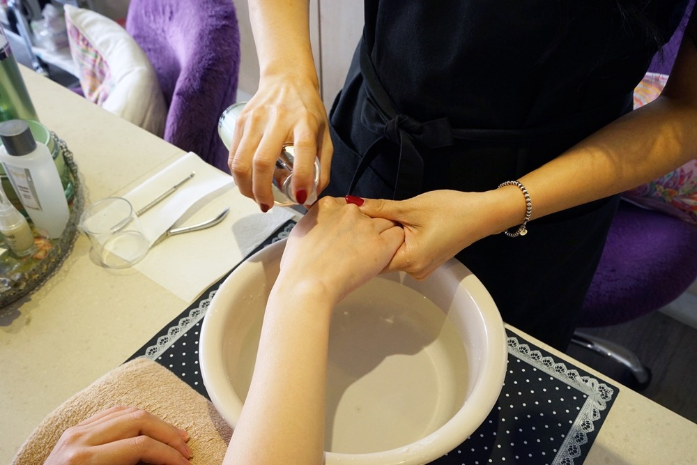 首先是手浴歡迎儀式,主要是將手部做個徹底清潔,避免任何髒污細菌殘留在皮膚上。vivi的動作一直都很輕柔,所以過程真的會很舒服又放鬆,透過細細的反覆按摩,將肌膚清潔乾淨。