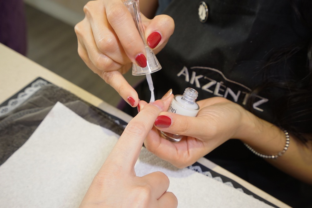 第三個步驟 滋養護甲油,主要是增強指甲韌度及彈性,避免乾燥斷裂,vivi說就像是指甲的面膜,補充指甲的營養。