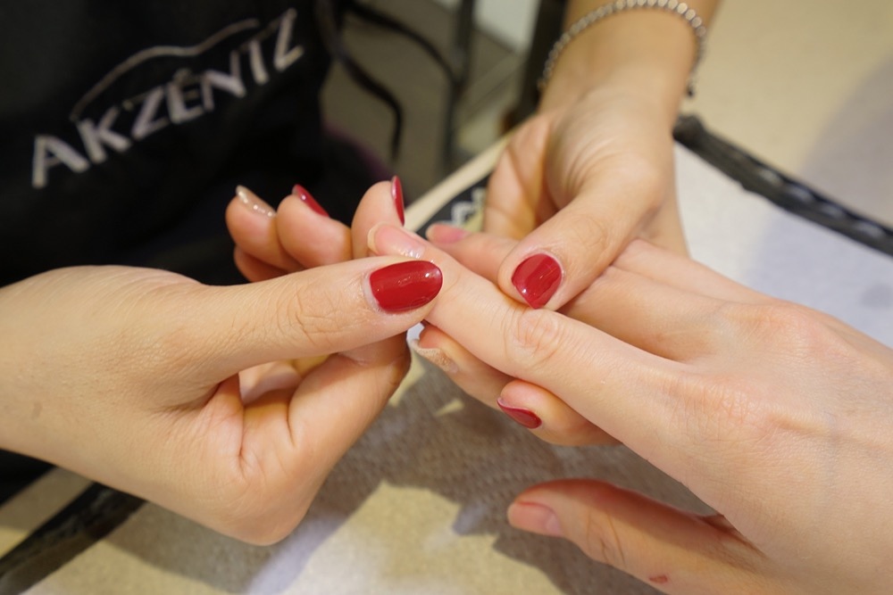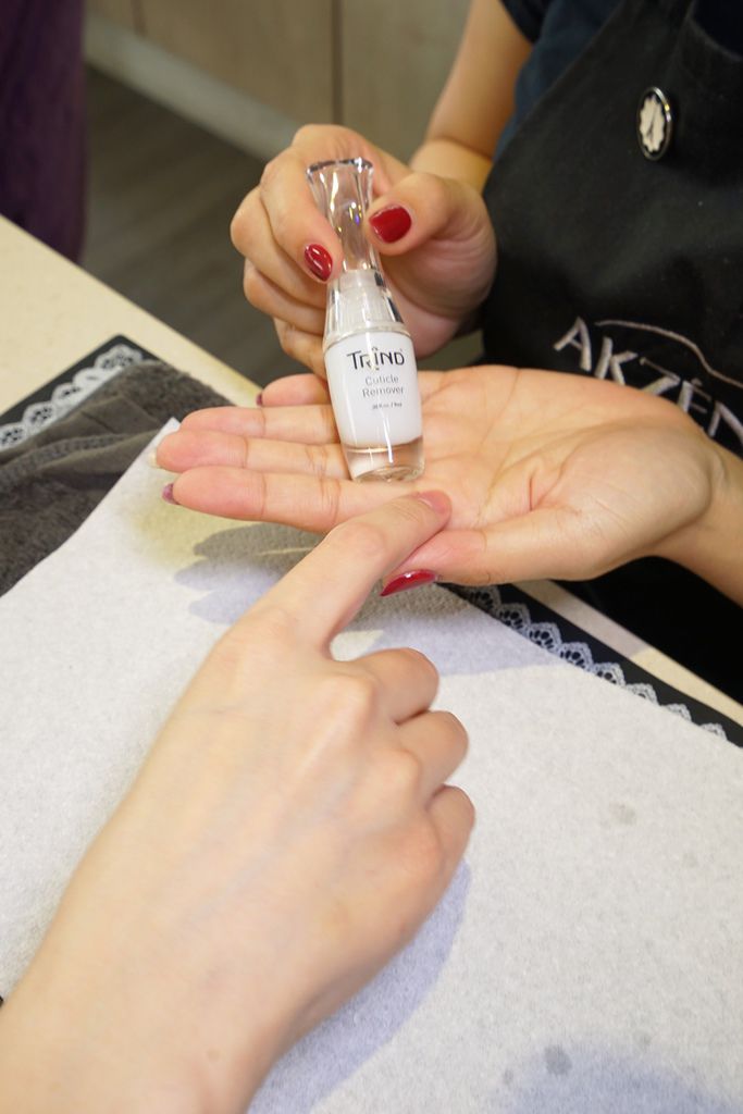 清潔甲面,每次都覺得這個步驟很療癒,因為看到一堆白白的被推推推推出來,就覺得指甲乾淨多了~(話說這些白白的如果沒有透過專業清潔,還真的是會堆積到不自知欸)