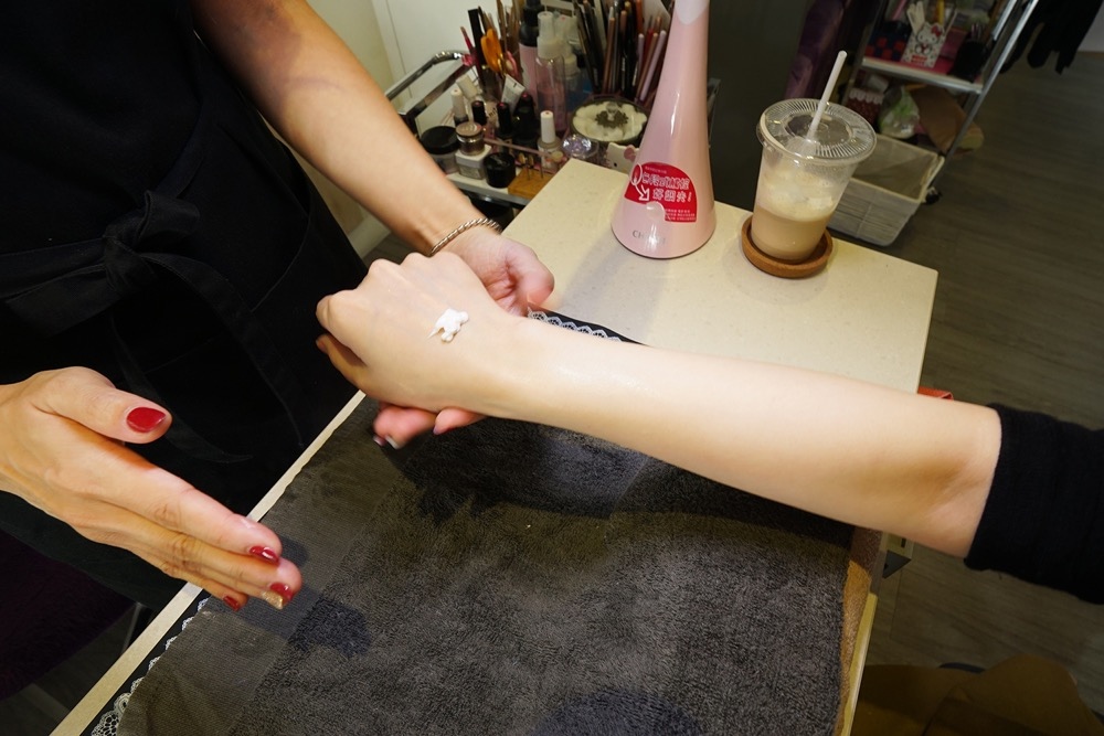 塗上厚厚一層之後,vivi用手細細幫我按摩,直到甲面和指緣肌膚吸收保養品。