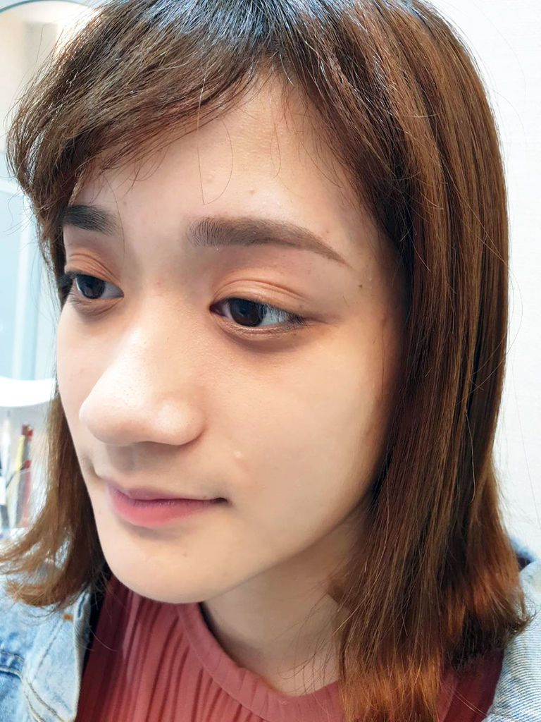 除毛後老師用眉粉把眉毛畫上,也教好友怎麼畫眉毛與講解眉毛走向,好友也說還好有老師,不然手殘的她又要亂畫了!