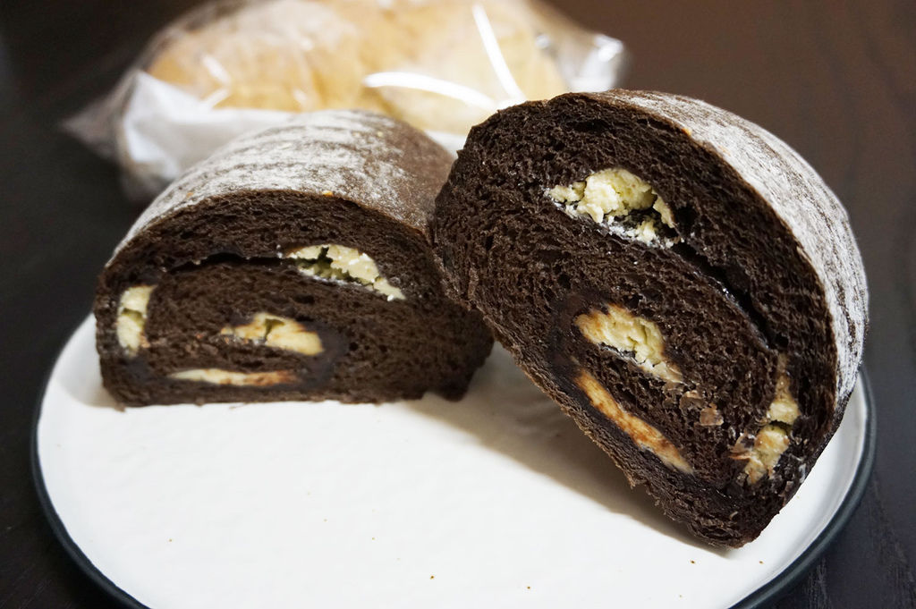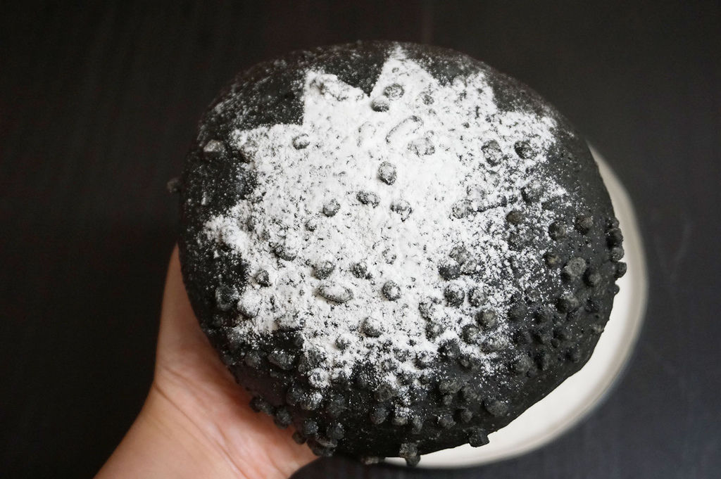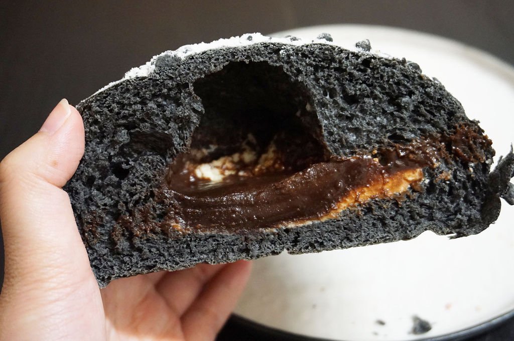 黑暗之魂,雖然取了一個黯淡的名稱,實際卻是擁有高實力的低調派,外觀就如同名稱一樣是黑色的,因為這是用竹炭下去做的一款麵包,裏頭卻是甜在心的巧克力內餡