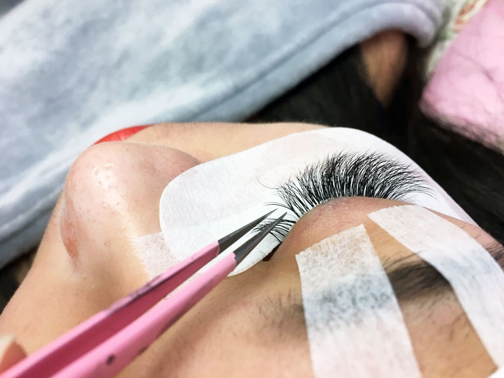 在卸睫及眼周清潔之後才會接上新的睫毛。