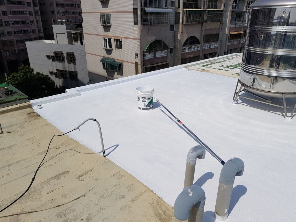 待補土面乾燥後,師傅又上了一層防水底油,等防水底油也乾了之後,才能開始上新的防水面漆。
