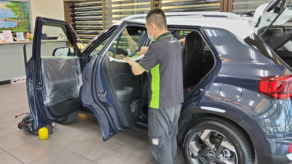▼跟嘉樂預約時間後,現場挑選隔熱紙,畢竟要使用的東西,還是現場挑比較知道。全車我選擇桑瑪克SUNMARK TK95系列,跟師傅預定好之後,就直接施作了,施作前嘉樂的防護措施做得很好,先將車子內裝、車門等等部位,套上保護套,避免在施作過程,傷害到我們的車子,這點很貼心。