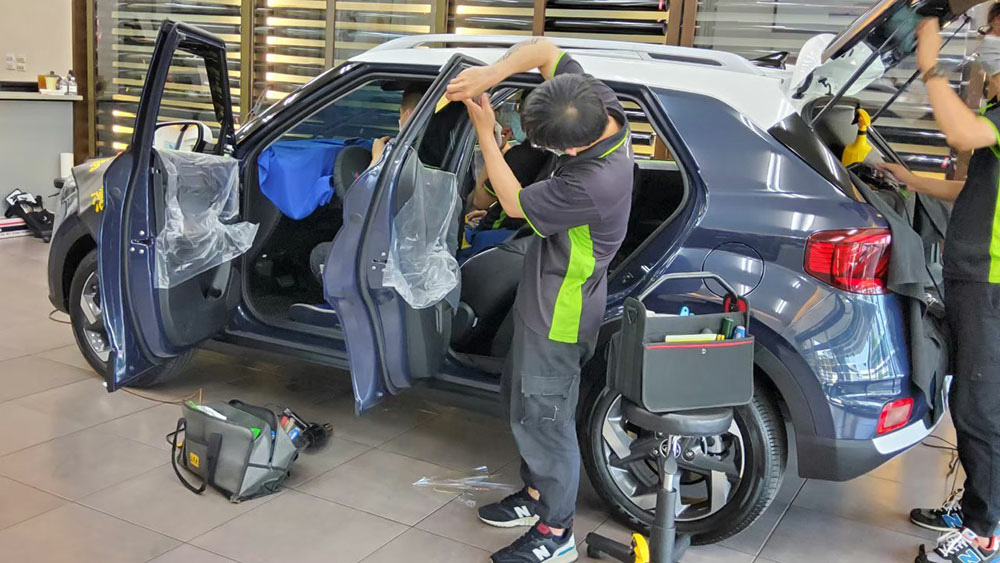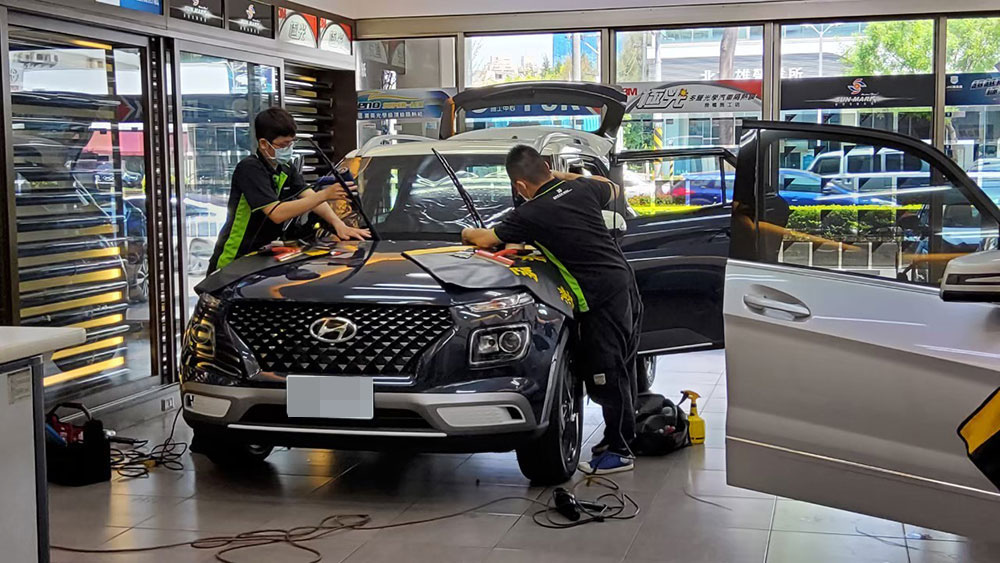 ▼仔細數一數,一共有四位師傅在替我的車子施作,這麼多師傅專心施作一台,除了分工更快速,施作的也能夠更加細膩!